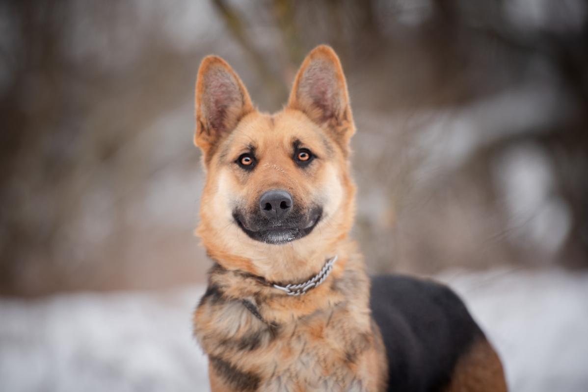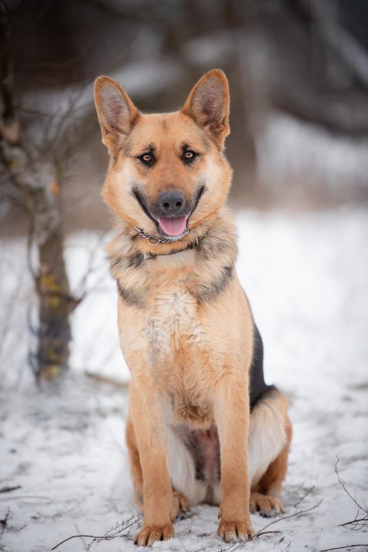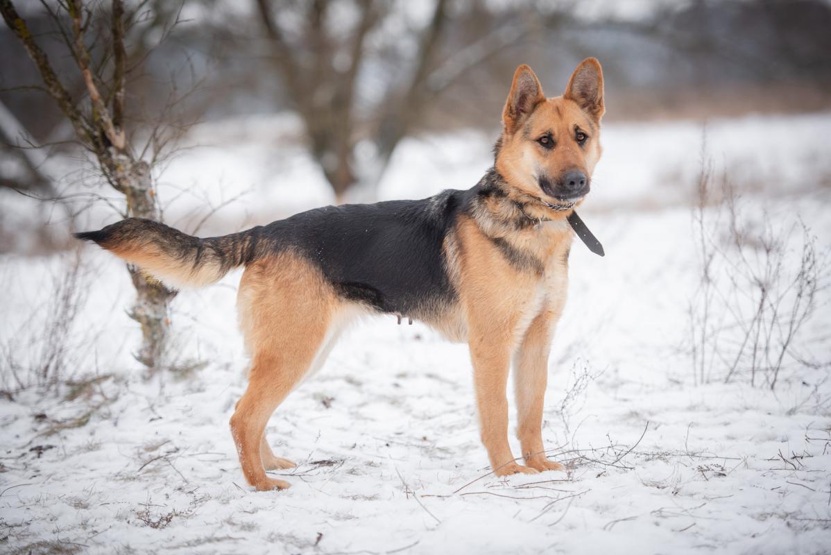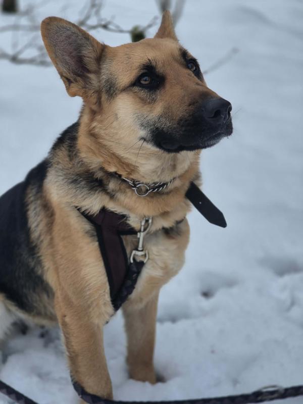To młoda sunia, w typie owczarka, która ma w sobie mnóstwo pozytywnej energii i ciekawości świata.