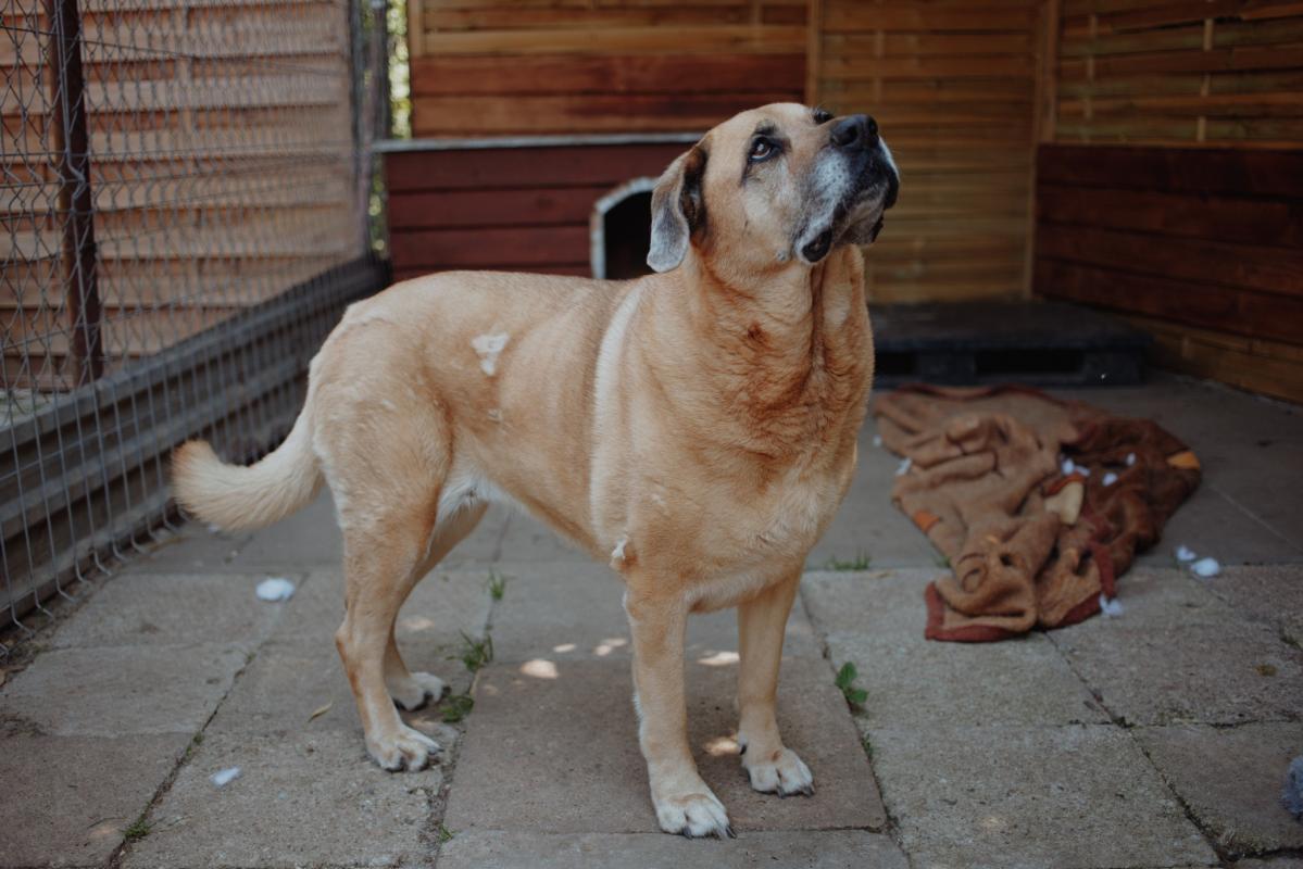 Jest około 10-letnią suczką, która wykazuje się względem ludzi zaufaniem, spokojem i łagodnością. Jest wykastrowana i żyje w zgodzie z innymi psami. Jedynie potrafi być dominująca przy jedzeniu, w innych przypadkach jest okej.